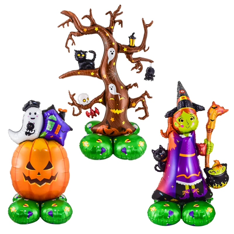 1set Giant Stand Pedestal Halloween Foil Balloons Pumpkin Ghost Witch Balloon Ghost Tree Halloween Party Decorations