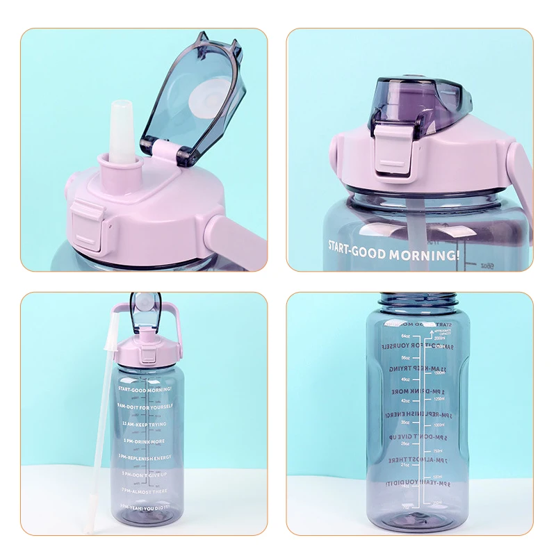 2 Liter Water Bottle With Straw Kawaii Cute Drinking Sports Bottles With Time Marker For Girls Water Jug Drinkware Outdoor Cup