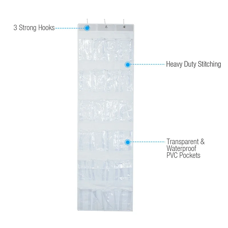 24 Pockets Shoes Organizer Rack Hanging Organizers Space Saver Hanging Over The Door Behind Closet Organizer Storage Hanger Home Household Storage Containers Color : New White|New Black
