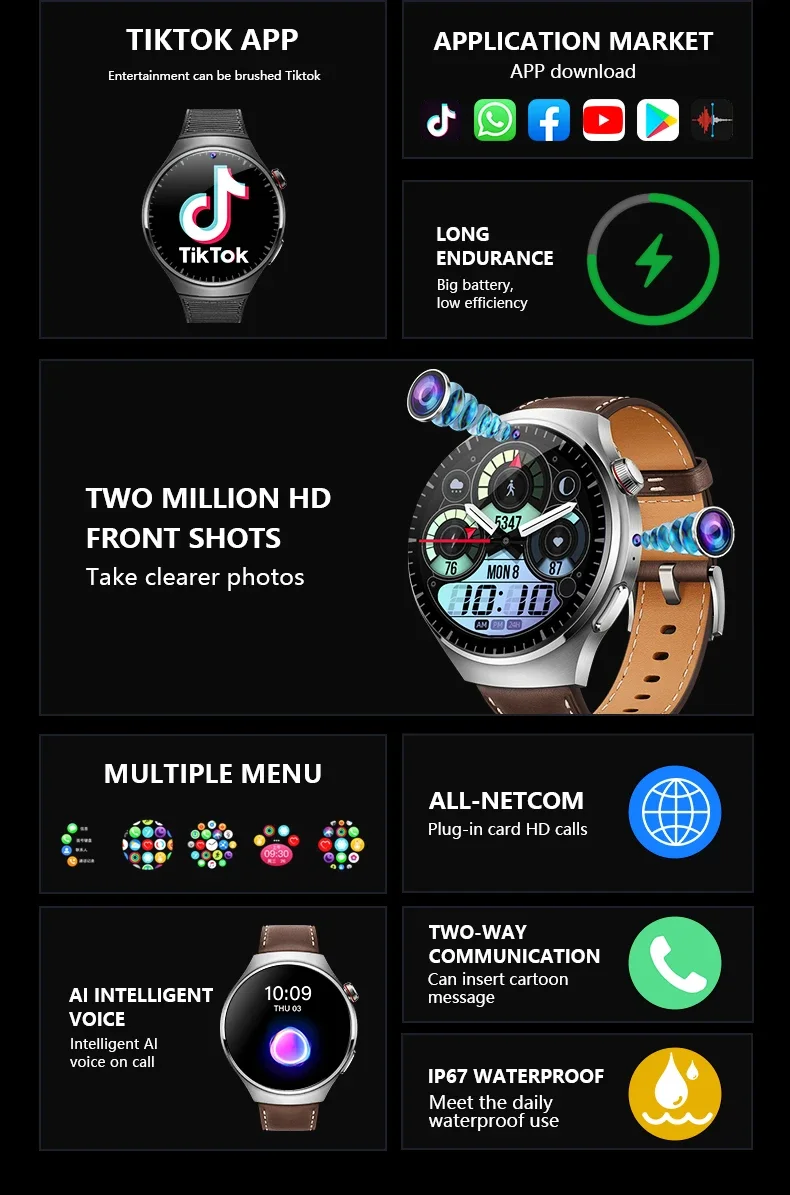 4G smartwatch Android OS Smartwatch Dual camera video call GPS 4G Internet access WIFI Wireless fast Internet access smartwatch