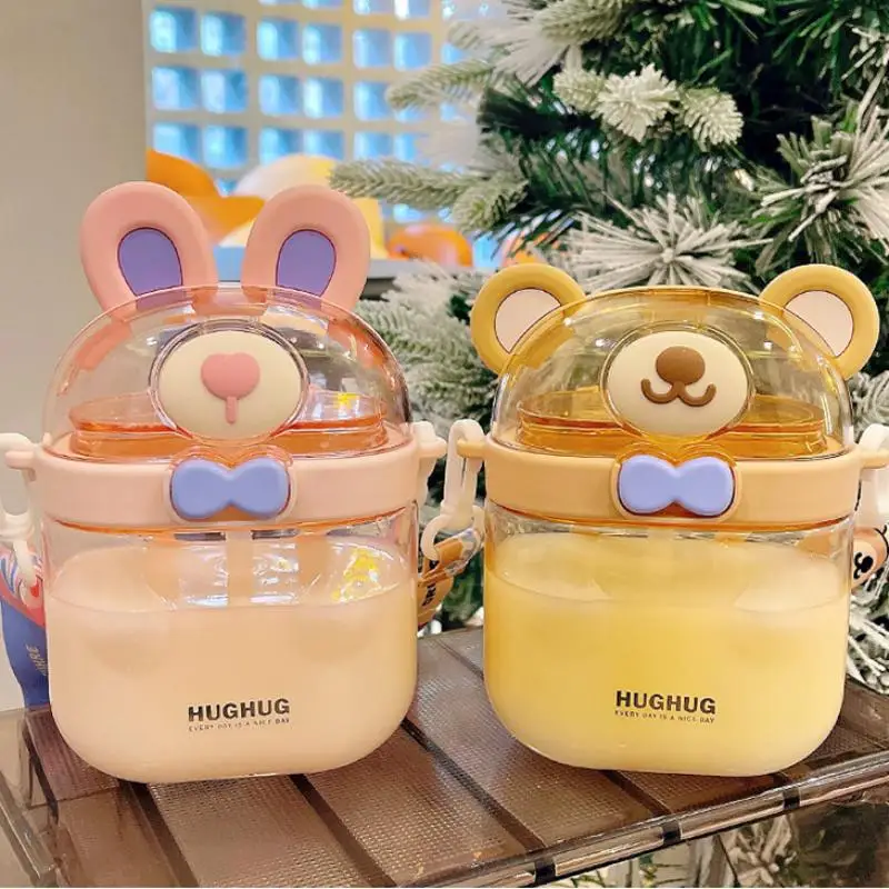 850ml Water Bottle For Girl Cartoon Travel Straw Mug Summer Cute Bear Plastic Cup Kawaii Kid Tumbler Portable Sport Drink Kettle