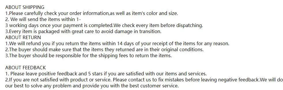 • If you did not receive the product within the guaranteed time( 45 days not including 2-5 day processing) you can request a refund or a reshipment.