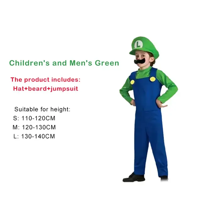 Child Anime Brothers Luigi Bros Costume Kids Hat Beard Jumpsuit Halloween Kids Cosplay Costume Boys Game Party Party Gift