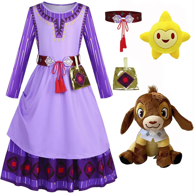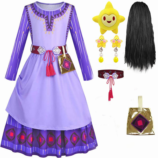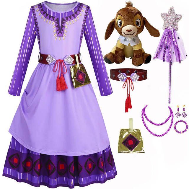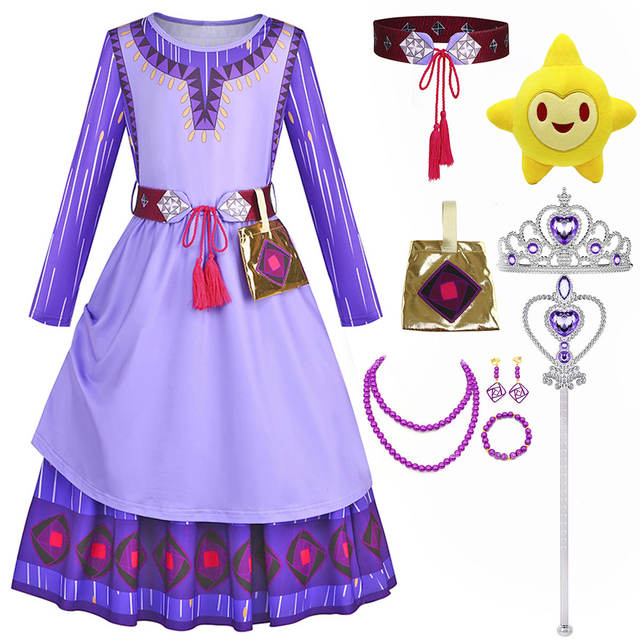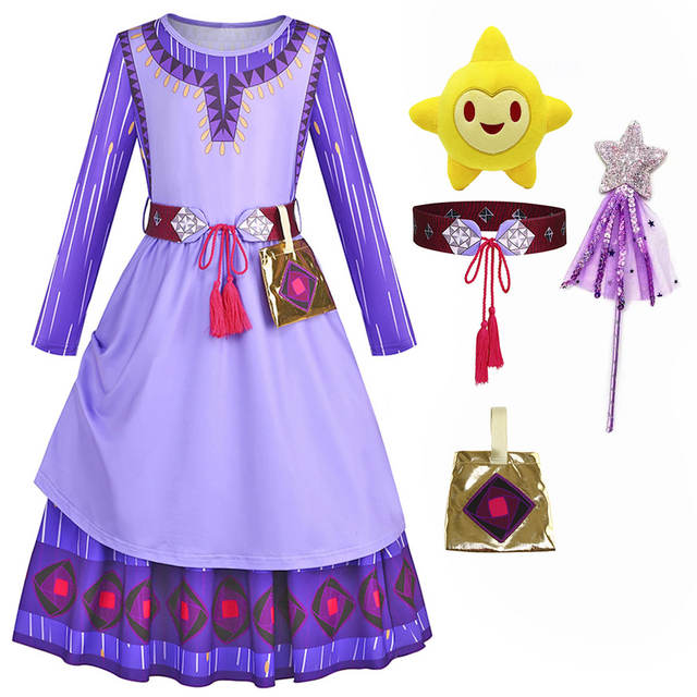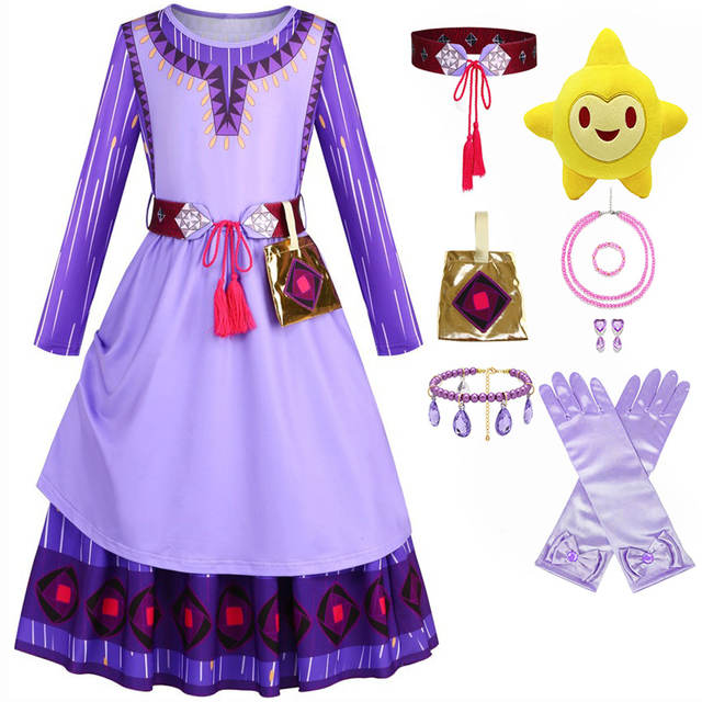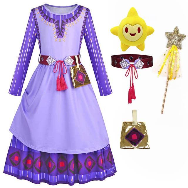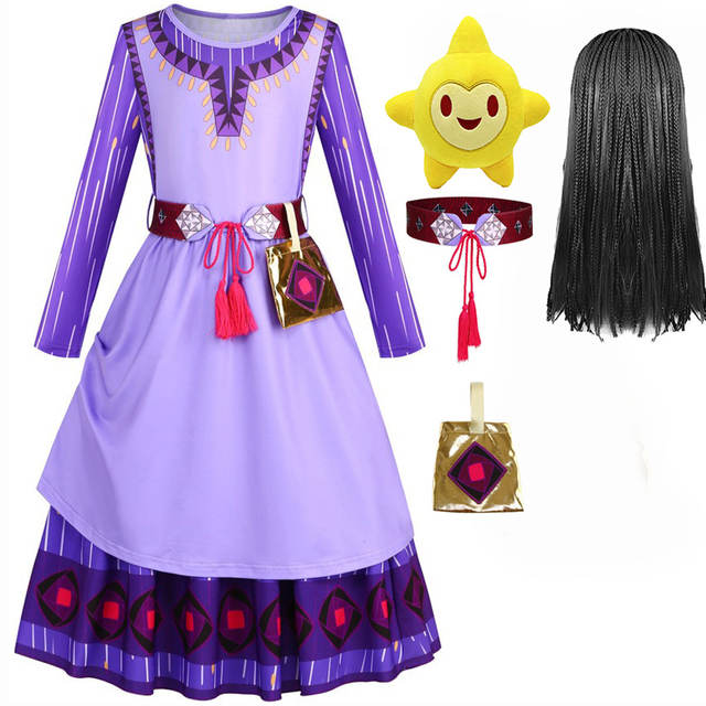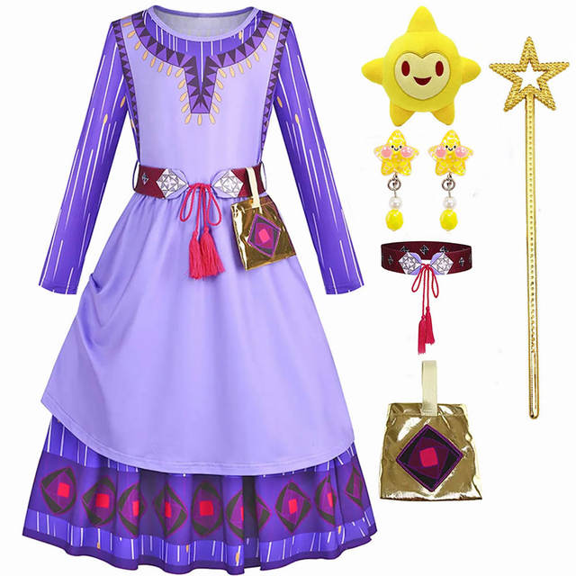 Disney Halloween Costumes for Girls Asha Cosplay Princess Dress Wish Asha Dress for Children Christmas Kids Girls Party Dresses