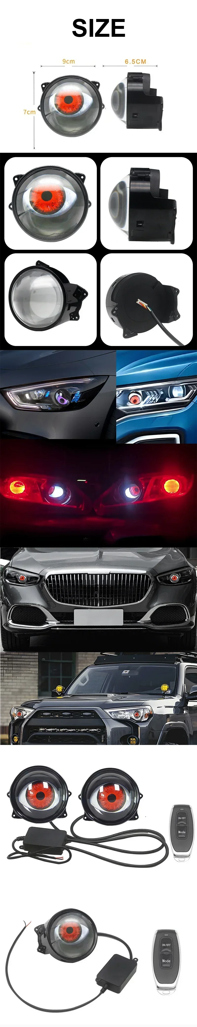 Dynamic Devil Eyes LED Car Headlights – Blinking Red Demon Eyes with Color Lenses, Light-Up Auto Eyeball Lights