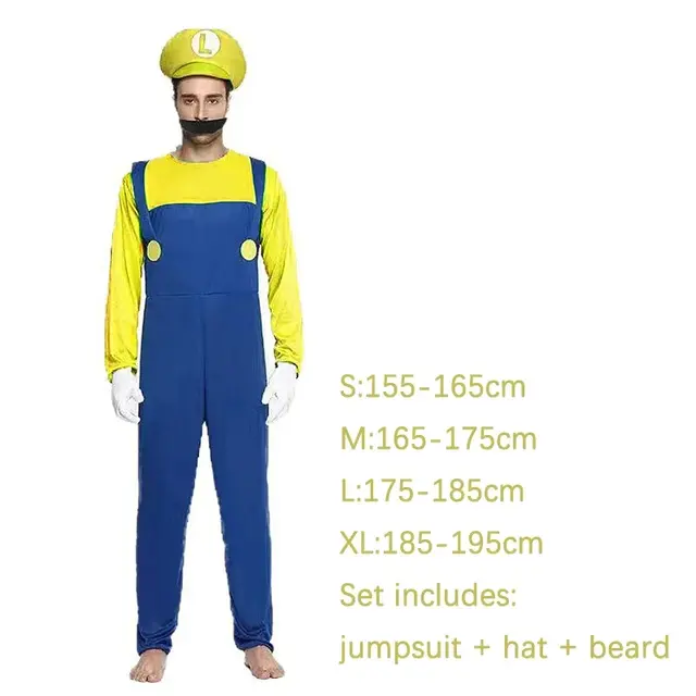 Game Anime Cosplay Halloween Costumes Funny Super Brother Bros Children Fantasia Cosplay Jumpsuit Xmas Carnival Adult Woman Suit