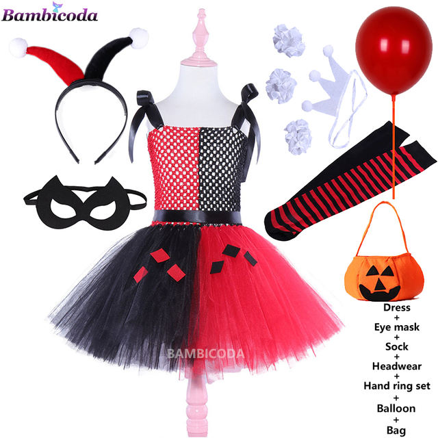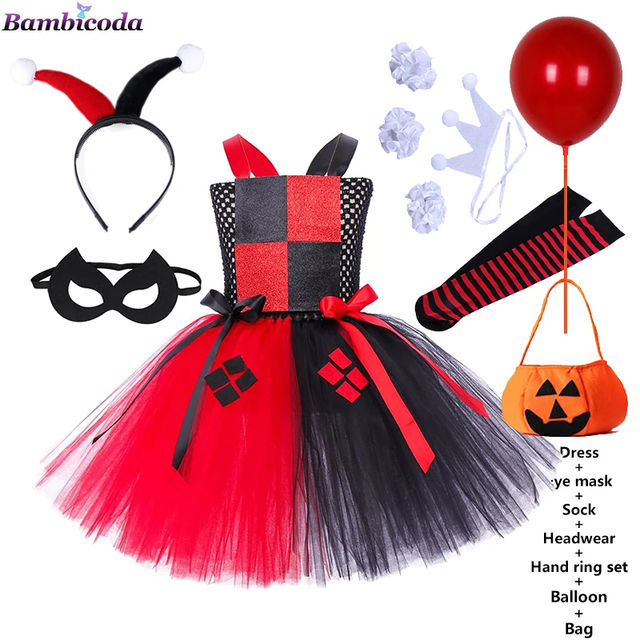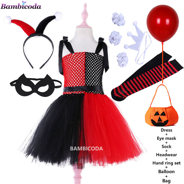 Girls Halloween Costume Circus Clown Costume Kids Tutu Skirts Dress Cosplay Stephen King’s Cosplay Carnival Dress Fancy Dress Up