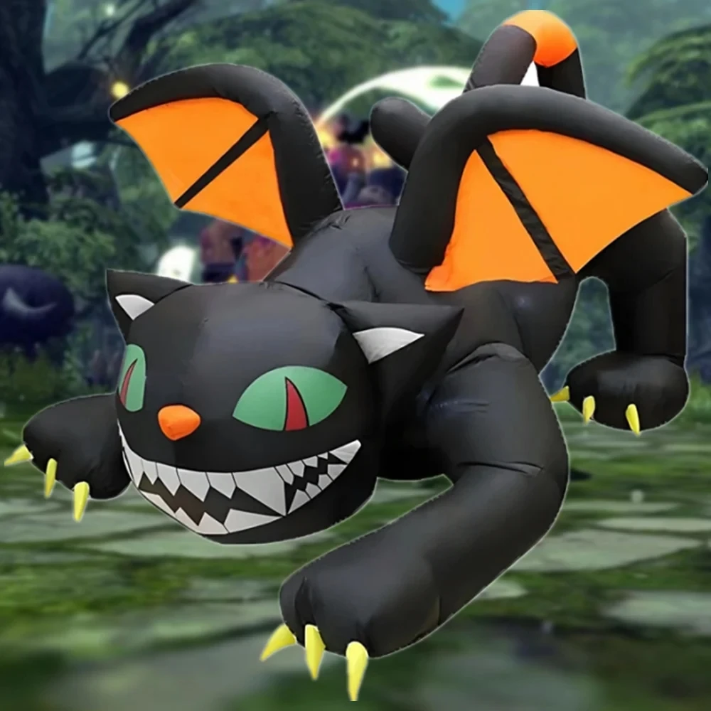 Halloween Inflatable 1.8m Black Cat Toy Shakes Head Ghost LED Lights Indoor Outdoor Yard Airblown Decoration Fun Party Display