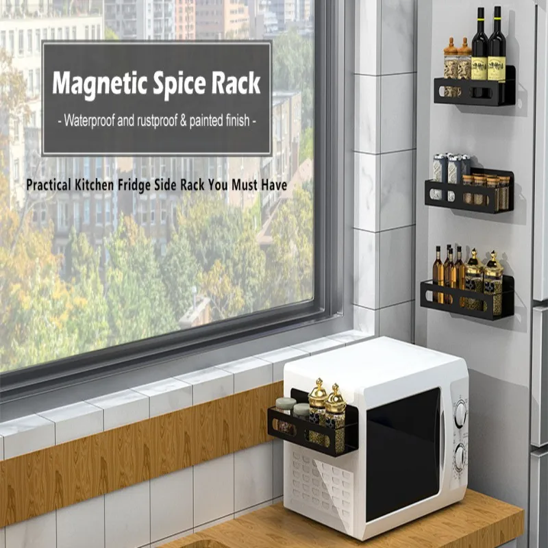 Kitchen Perforation-free Refrigerator Magnetic Storage Rack Side Seasoning Rack Multi-purpose Magnetic Absorption Storage Rack