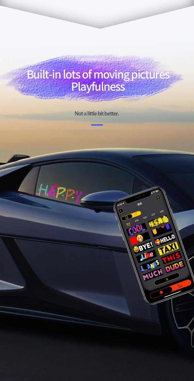 1. Wireless APP control, you can change the content from the application on your phone, do DIY graffiti, change the text display on the truck screen/customize messages on the APP.