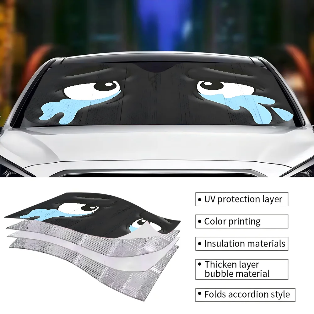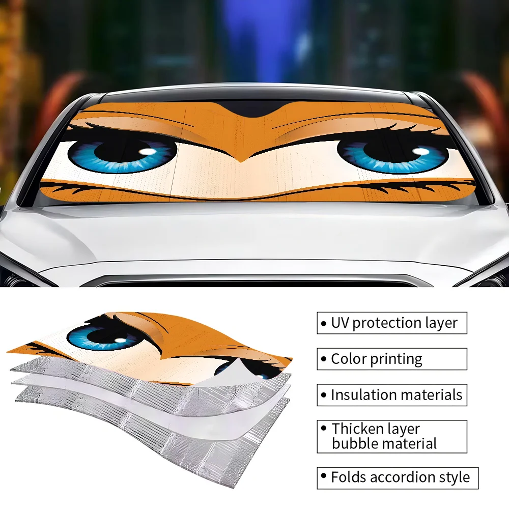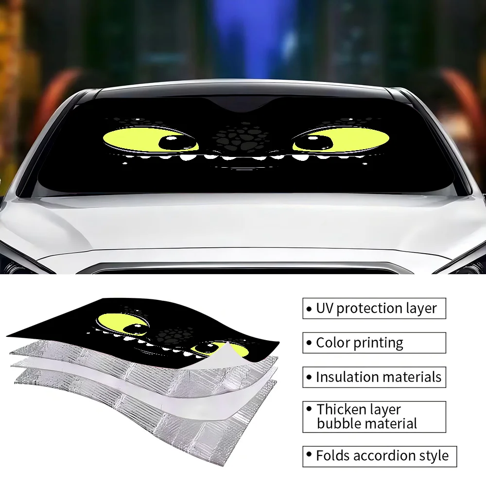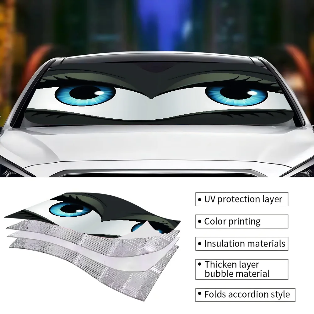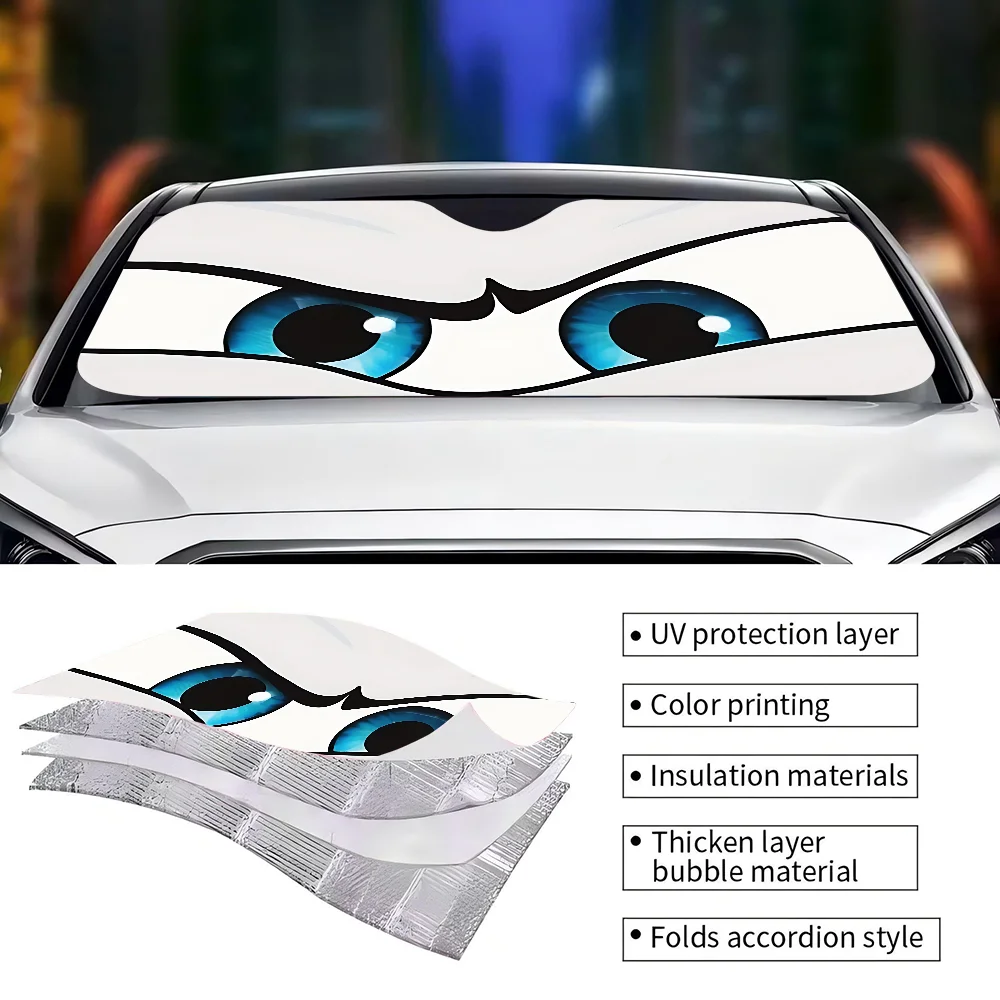 New Cartoon Big Eyes Car Windshield Sun Shade For Car SUV Truck Front Window Sun Shade Accessory Visor Protector Shield Cover