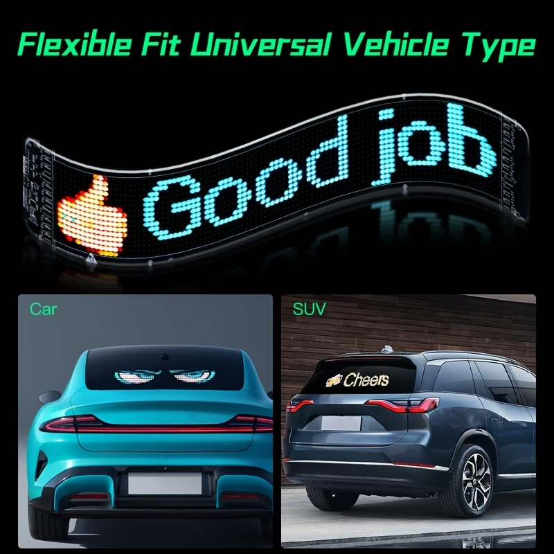 Whether you’re driving a compact car or a full-size SUV, this flexible LED screen adapts seamlessly to your windshield or rear glass. Designed with versatility in mind, it blends perfectly with any vehicle type while delivering eye-catching animations, messages, or emojis.