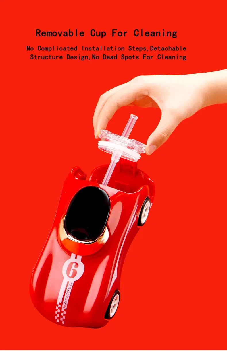 Small Sports Car Shape Straw Cup Kids Toy Plastic Water Cup Mini Shape Creative With Shoulder Strap Portable Water Bottle