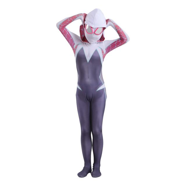 Spidergirls Gwen Stacy Spandex Jumpsuits Boy Girl Zentai Costume For Halloween Cosplay Female Spider Suit For Kids Costumes