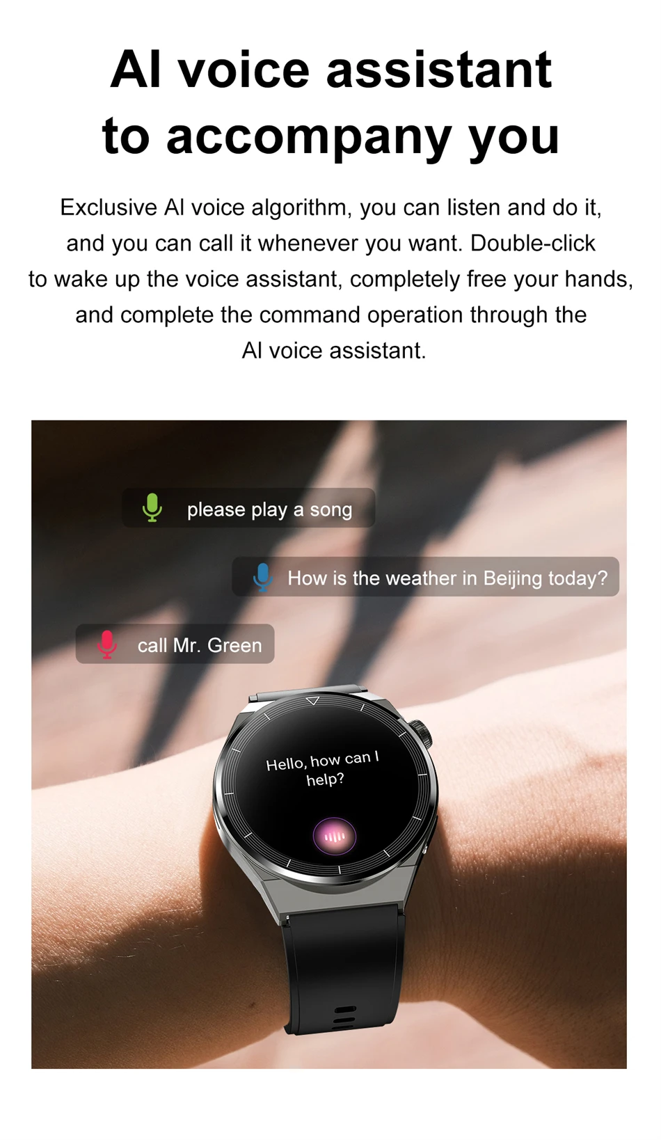 Dear friend, thank you very much for your support, this is a multifunctional sports smart watch! The product has many very useful functions! For example, the NFC function, you can open the door through the watch! Bluetooth calling function, after connecting the Bluetooth of the mobile phone, you can make calls directly! AI voice assistant function, open the function of the watch through voice! There are also some medical functions to monitor heart rate, blood pressure, and keep an eye on your health! All are very useful functions!